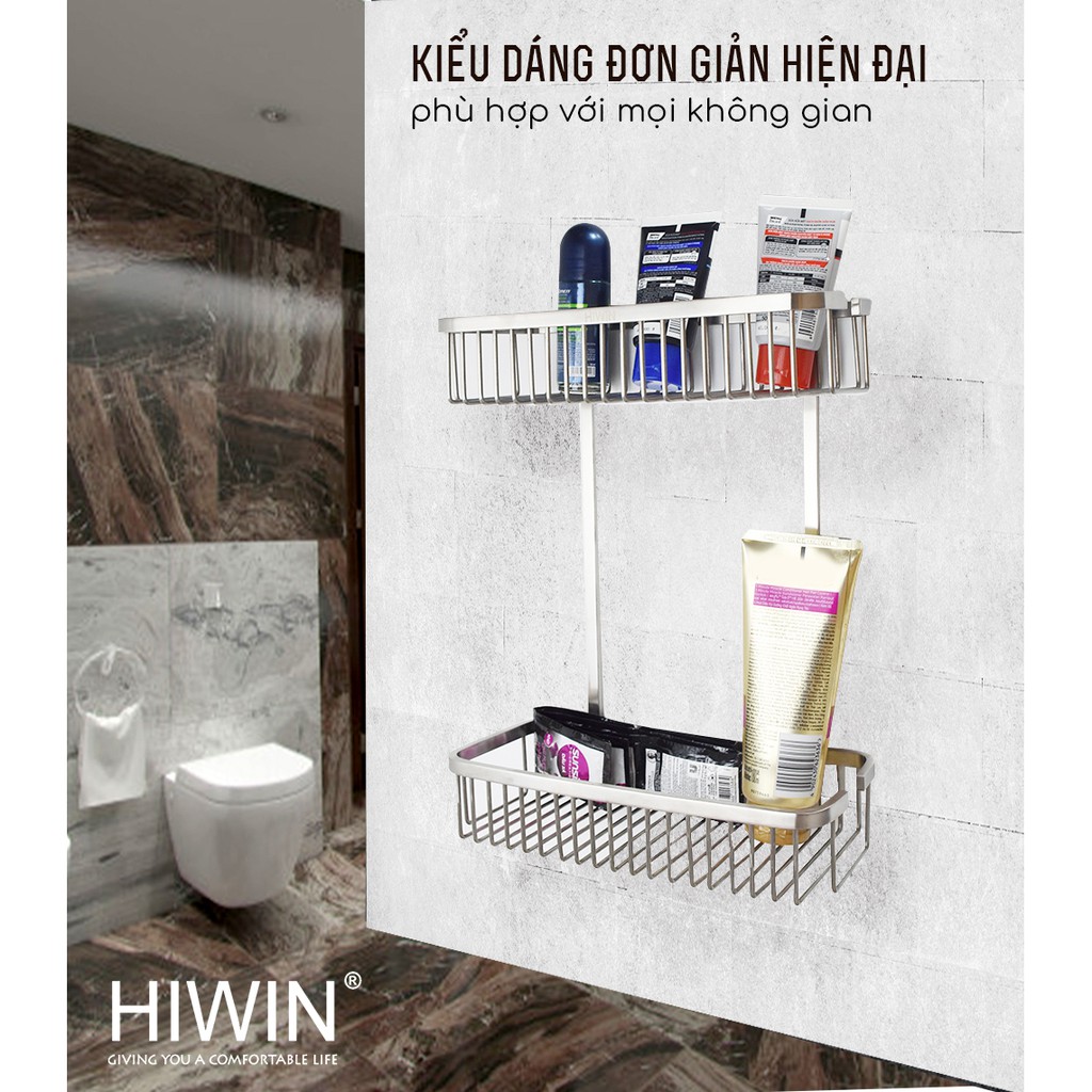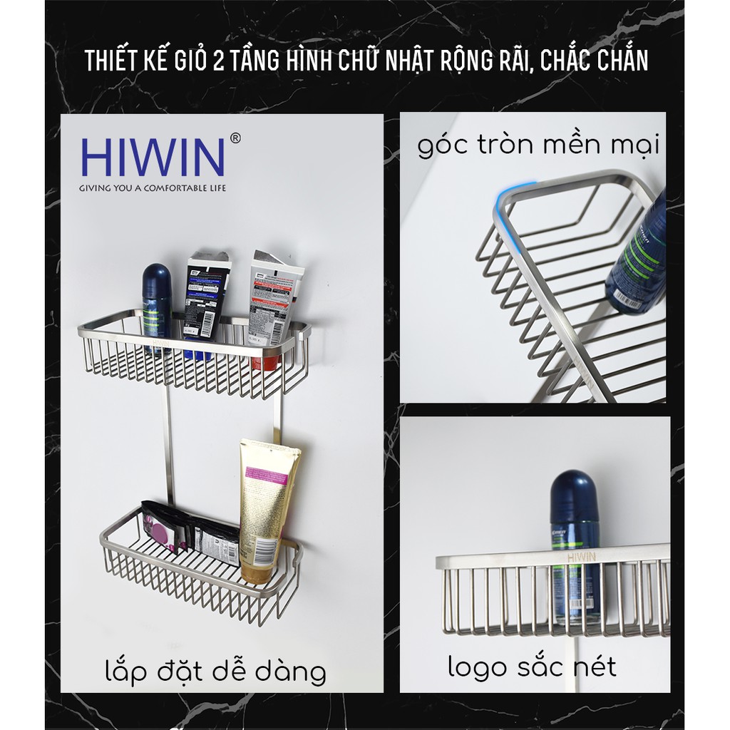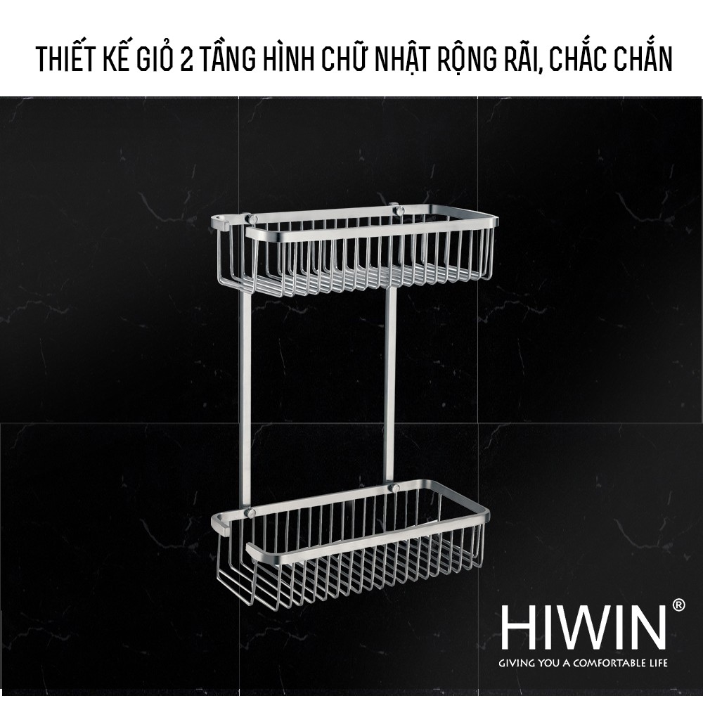 Giỏ để đồ 2 tầng chữ nhật tiện lợi inox 304 cao cấp Hiwin Y-207 265*125*340