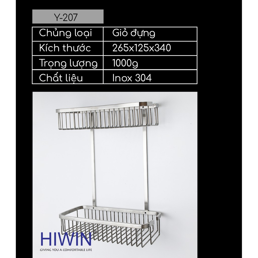 Giới thiệu Giỏ để đồ 2 tầng chữ nhật tiện lợi inox 304 cao cấp Hiwin Y-207 265*125*340