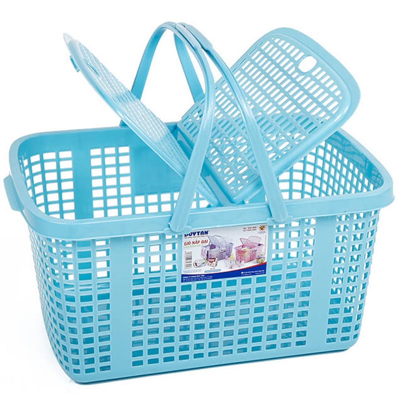 -Với giỏ, giỏ có nắp, làn nhựa đi chợ Duy Tân vừa giúp các mẹ đi chợ nhanh chóng tiện dụng, vừa là cách các mẹ bảo vệ sức khỏe bảo vệ môi trường trước mối nguy hại từ túi ni lông.
