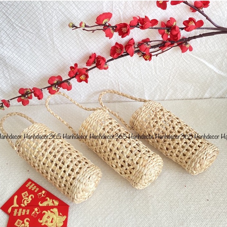 Lẵng cắm hoa, giỏ cói có quai xách đựng bình nước trang trí decor, làn đựng hành tỏi
