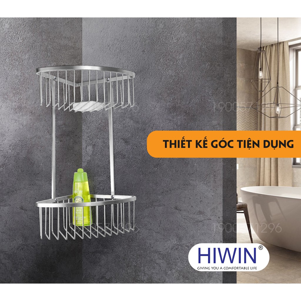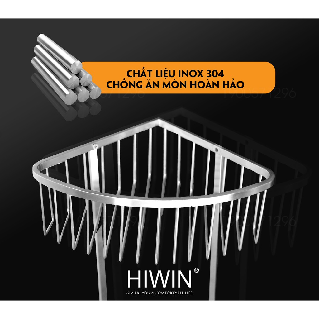 Giỏ đựng đồ 2 tầng inox 304 mặt mờ Hiwin Y-204 kích thước 200x200x460mm