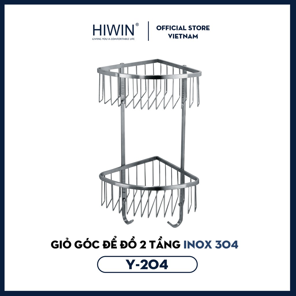 Giới thiệu Giỏ đựng đồ 2 tầng inox 304 mặt mờ Hiwin Y-204 kích thước 200x200x460mm