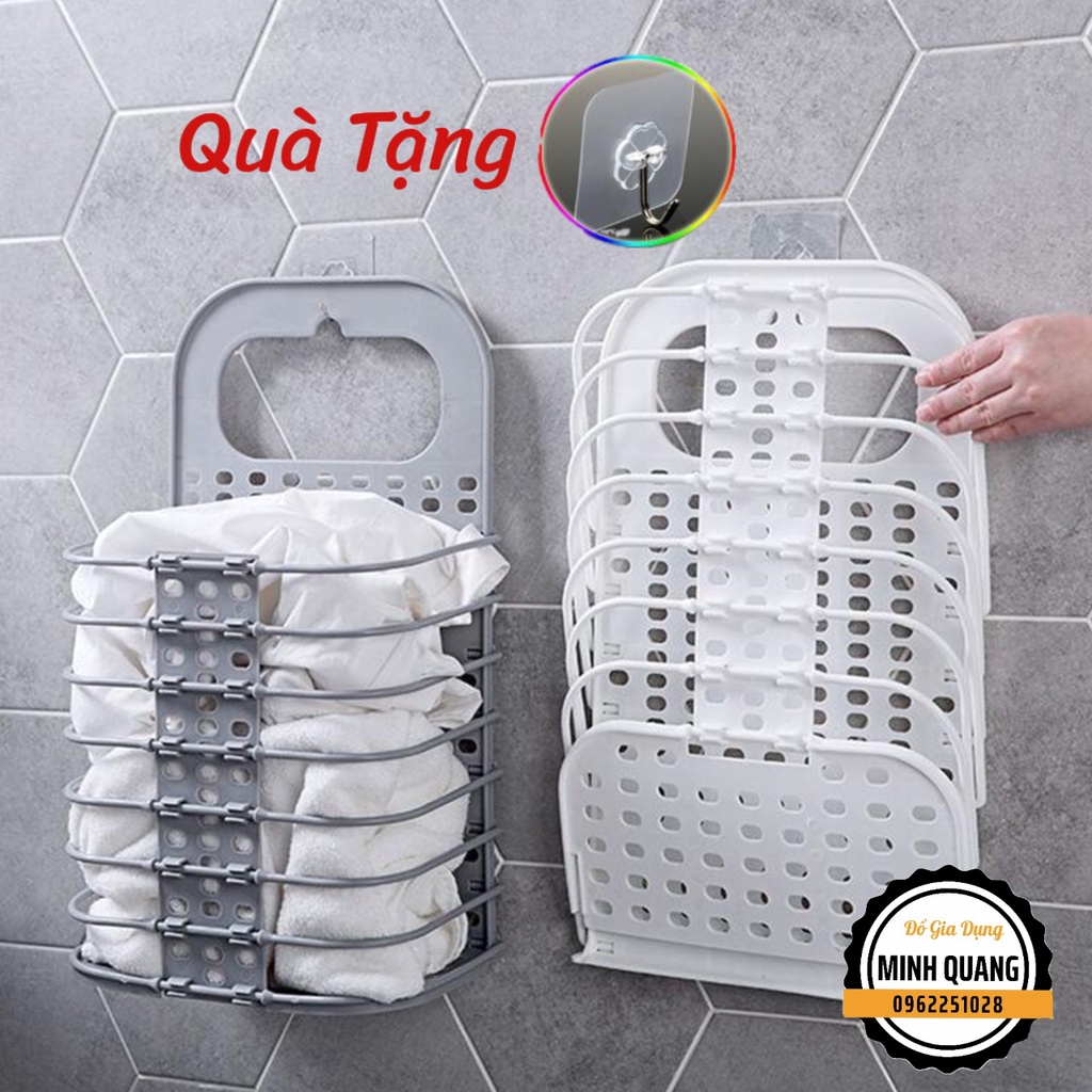 Giỏ Đựng Đồ Treo Tường Gập Gọn Thông Minh Tặng Kèm Móc Dính, Giỏ Đựng Quần Áo Nhà Tắm Treo Tường