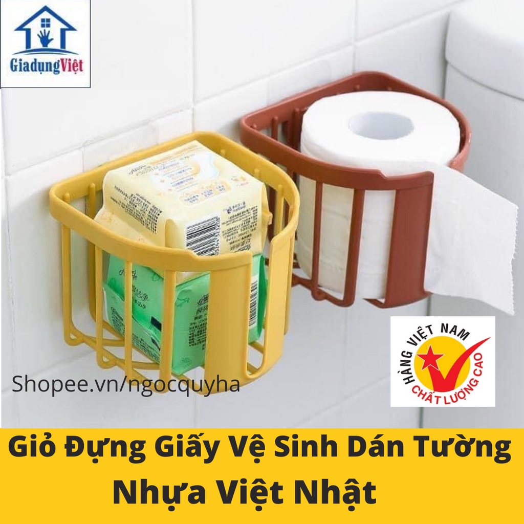Giỏ đựng giấy vệ sinh dán tường tiện ích Việt Nhật, Khay kệ đựng đồ đa năng