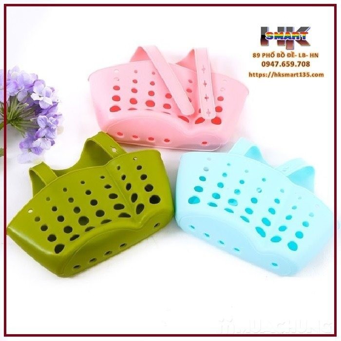 Giỏ treo đồ có móc treo tháo lắp tiện lợi với kích thước nhỏ gọn có thể treo ở nhiều vị trí khác nhau trên tường, hoặc vòi nước… phù hợp với nhà tắm, bếp, nhà vệ sinh,...- Đựng được nhiều đồ như: giẻ rửa bát, bàn chải, cọ xoong,... giúp không gian thêm gọn gàng, ngăn nắp.- Bên dưới có nhiều lỗ thoát nước giữ cho vật dụng luôn khô ráo, sạch sẽ.- Chất liệu nhựa nguyên sinh mềm dẻo, bền đẹp, dễ dàng vệ sinh sạch sẽ.