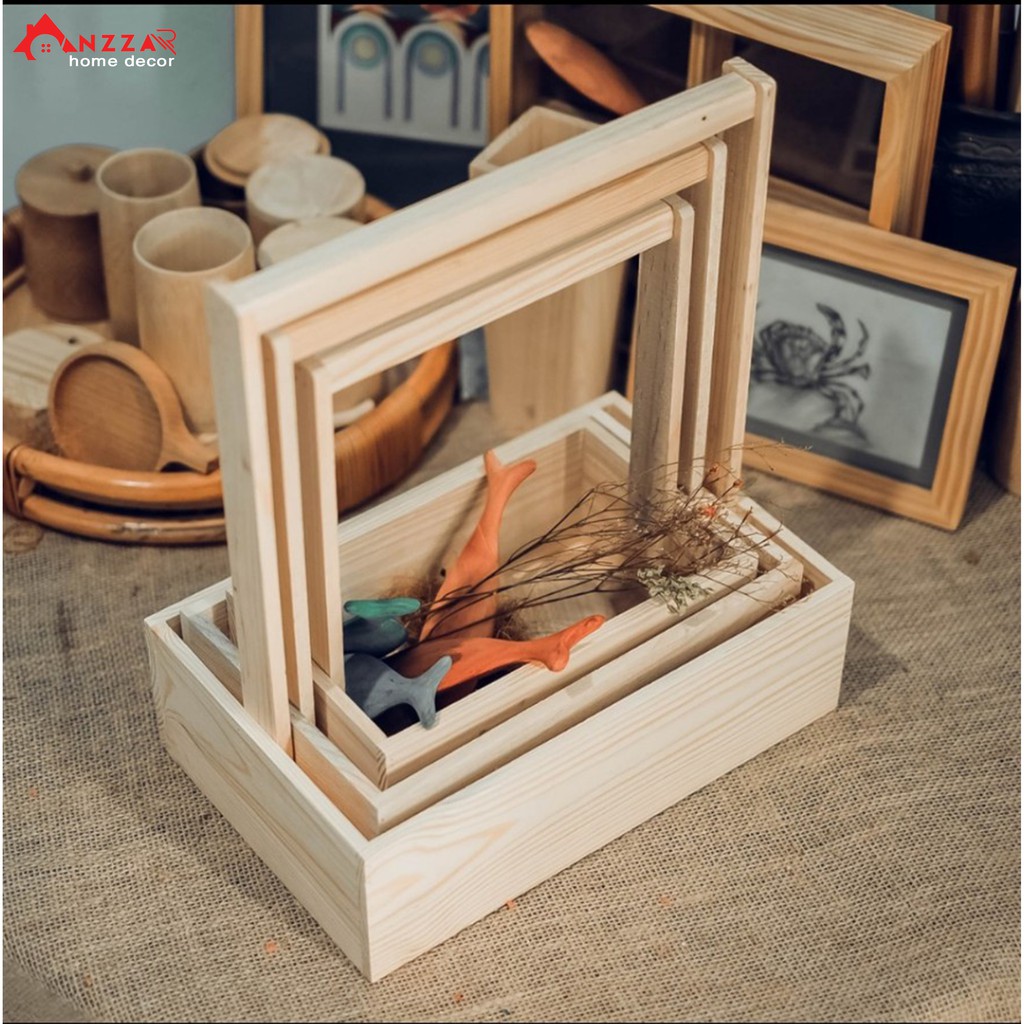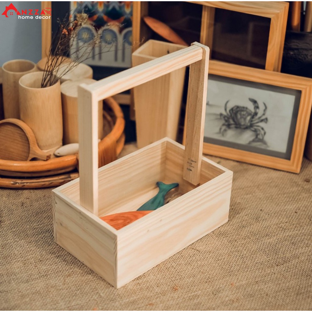 Nhà cửa & Đời sống > Trang trí nhà cửa > Bình trang trí || Giỏ gỗ cắm hoa, làm giỏ quà tặng có quai xách từ gỗ thông cao cấp Anzzar GH-01Còn hàng