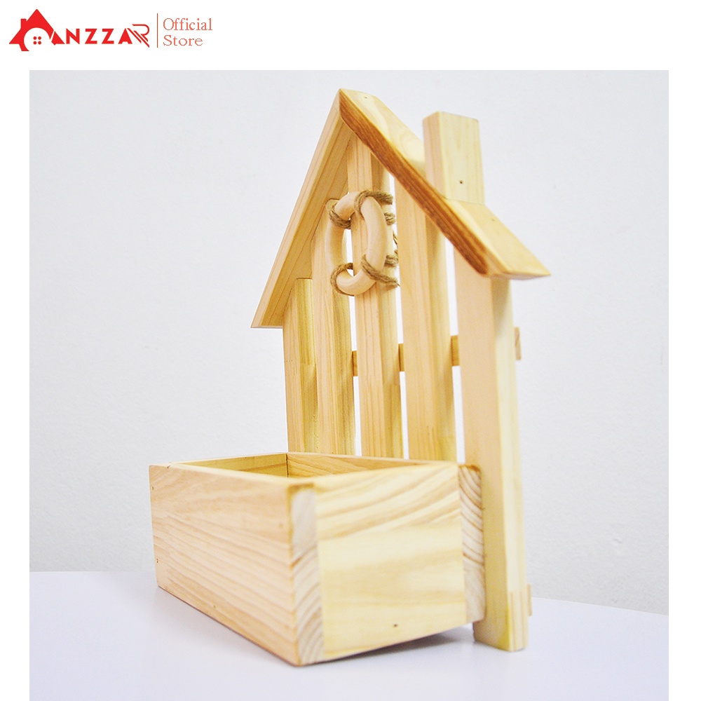 Giỏ gỗ cắm hoa treo tường Anzzar thiết kế mái nhà nan gỗ độc đáo trang trí nhà cửa GHG-01