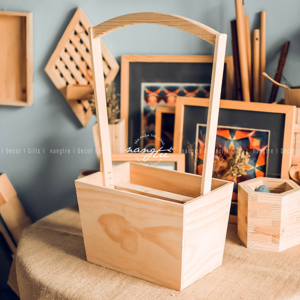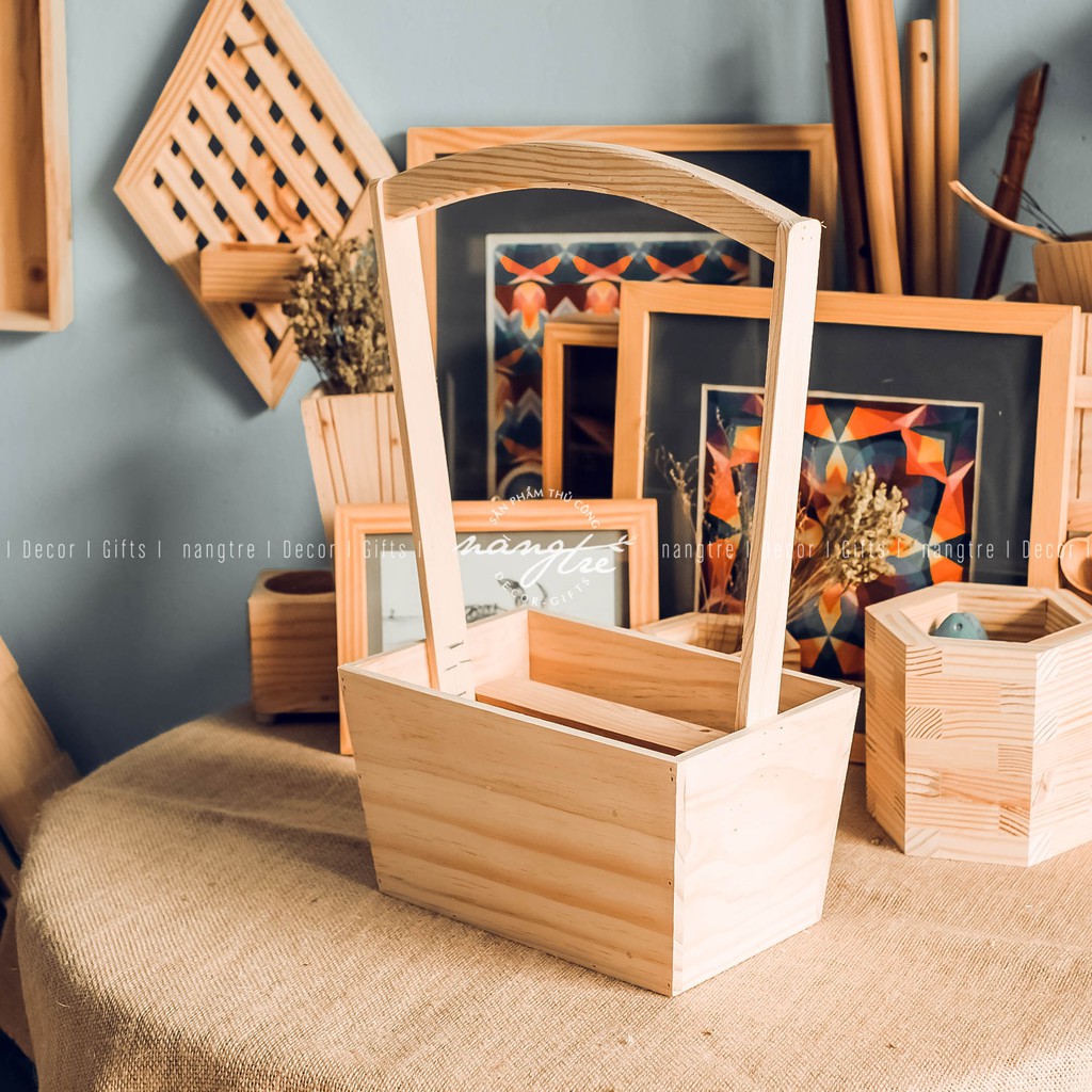 Giỏ gỗ trang trí hoa - giỏ gỗ trang trí - Wooden basket with flowers