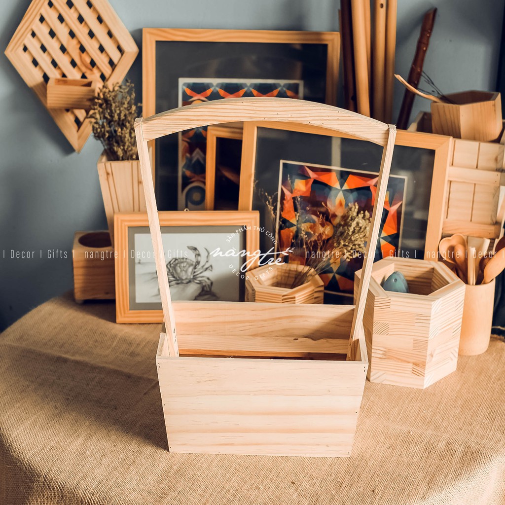 Giỏ quà bằng gỗ - giỏ gỗ trái cây - giỏ gỗ đa năng - Wooden basket of fruitĐược làm từ gỗ thông nhập có vân gỗ, màu gỗ tự nhiên phong cách gỗ mộc mạc
