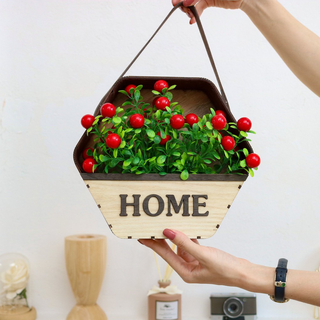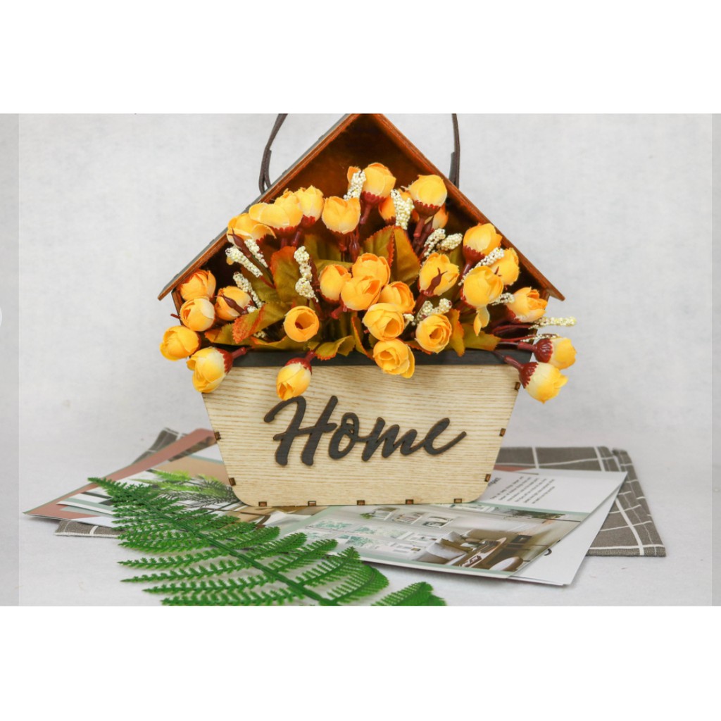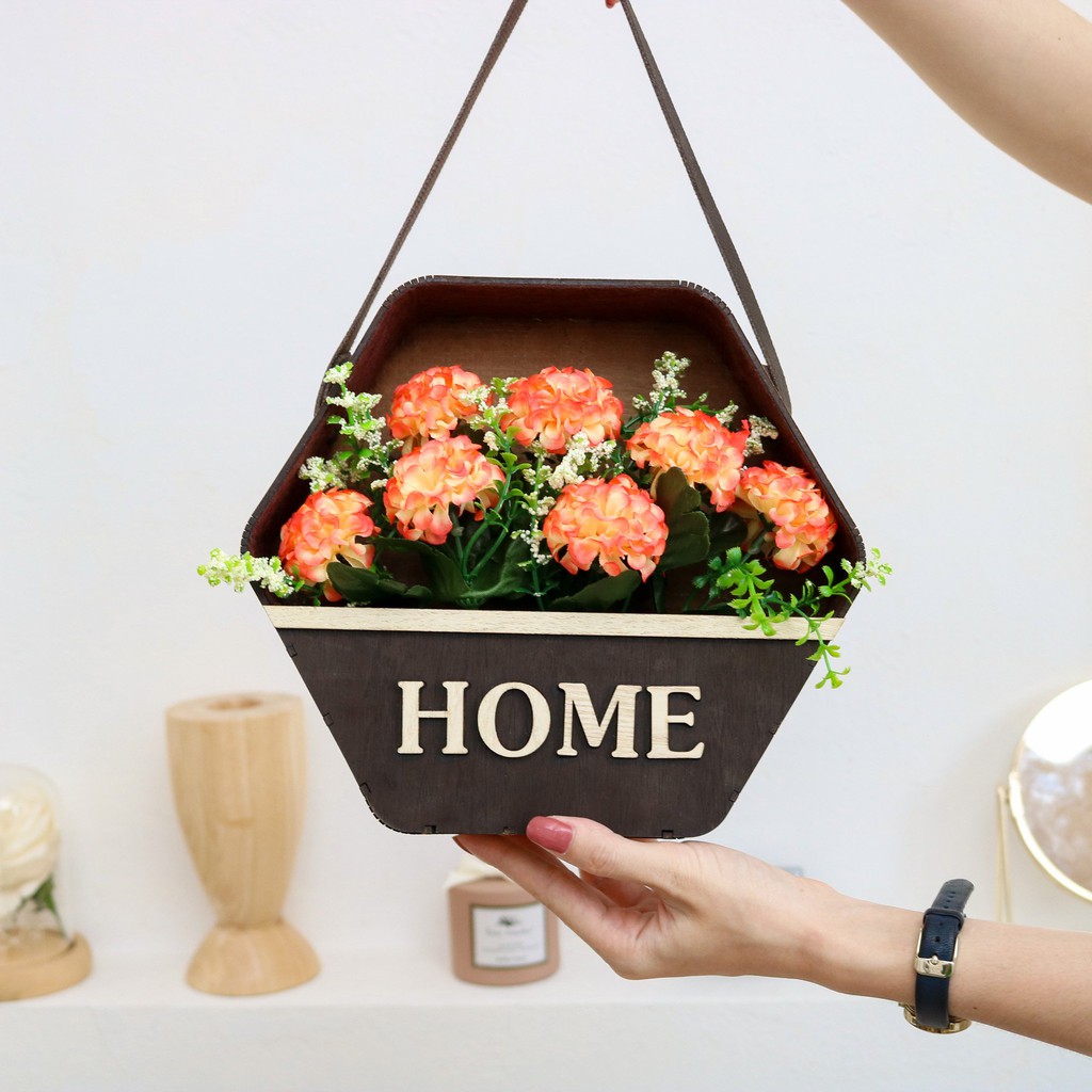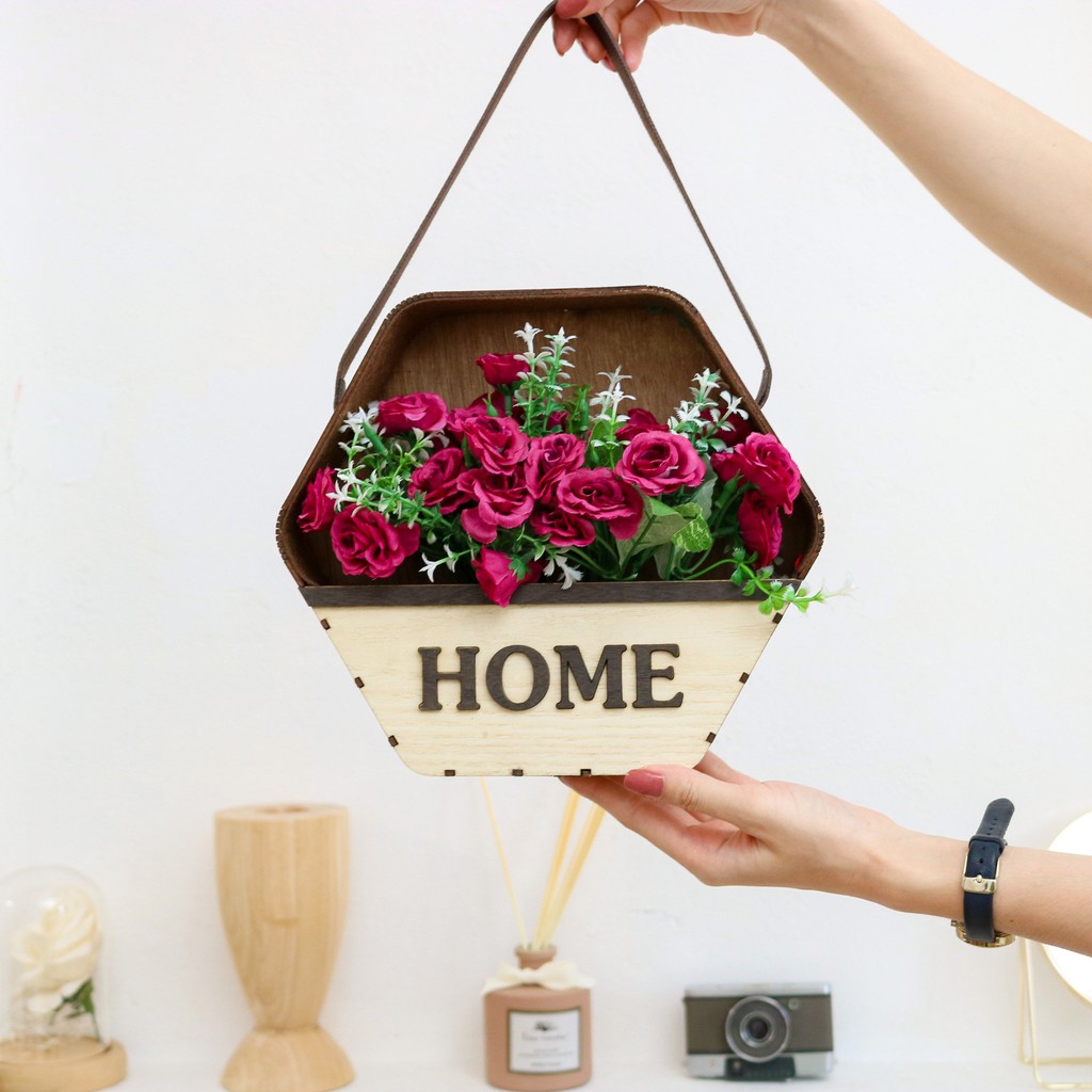 Nhà cửa & Đời sống > Trang trí nhà cửa > Bình trang trí || [Mã LIFE2403ALL giảm 10% đơn 50K] Giỏ hoa chất liệu gỗ màu mộc HOME, giỏ hoa trang trí decor phòng ngủ ,phòng khách .Còn hàng
