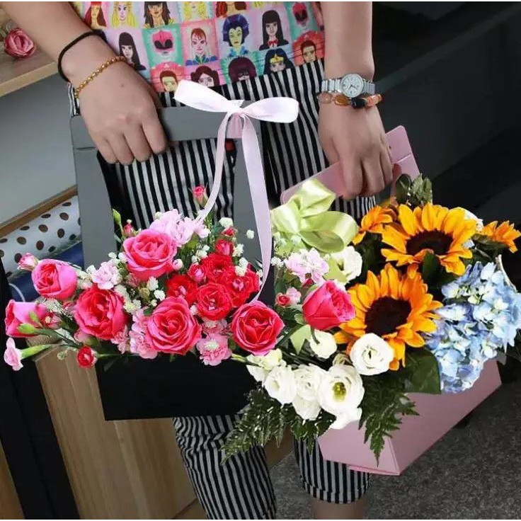 Nhà cửa & Đời sống > Trang trí nhà cửa > Bình trang trí || Giỏ hoa giấy cứng gấp gọn, có quai xách (chưa gồm hoa, cỏ, nơ)Còn hàng