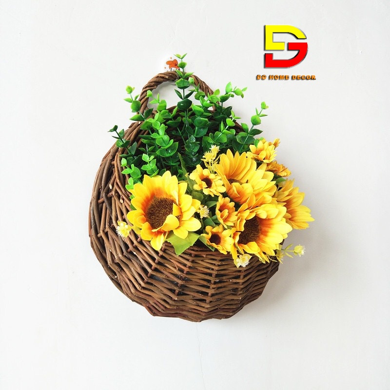 Giỏ Hoa Treo Tường Cắm Sẵn Nhiều Mẫu Chất Liệu Mây Tre Đan Tự Nhiên Trang Trí Nhà Cửa Tặng Móc 3D