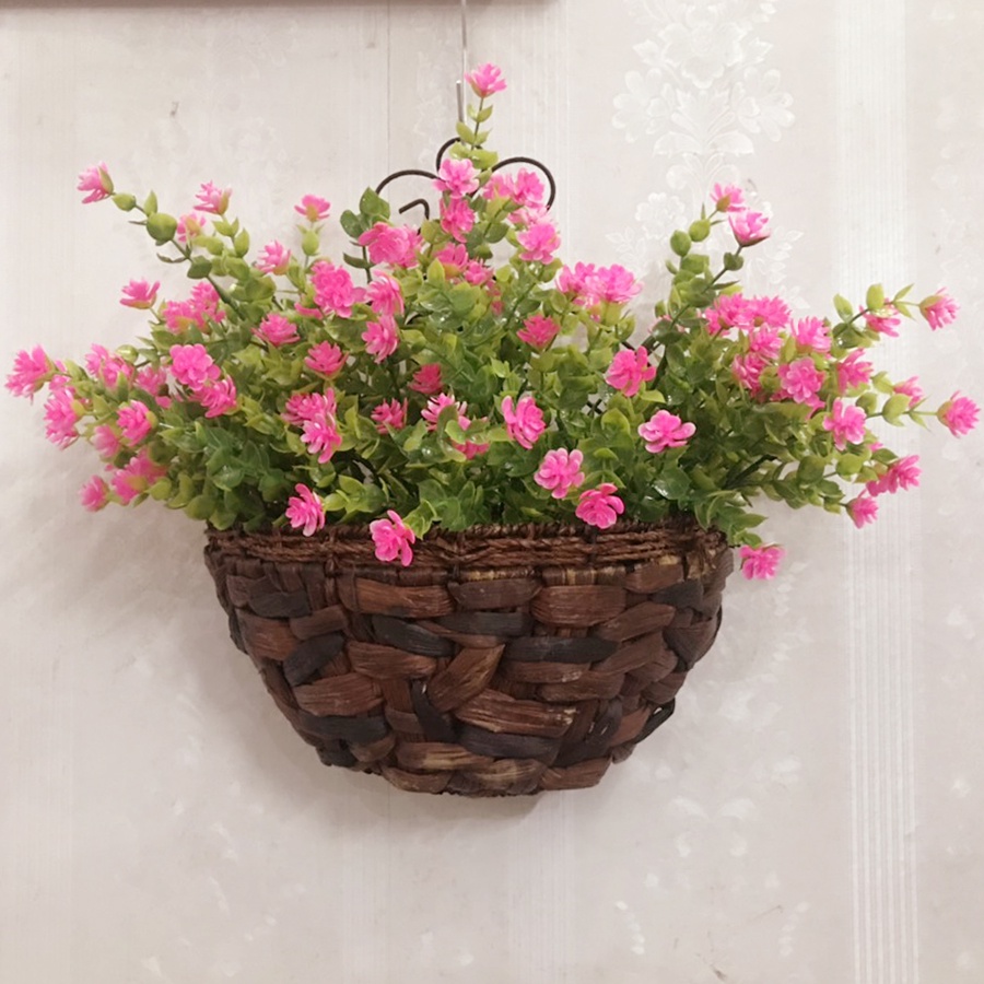 Giỏ Hoa Treo Tường Cói Và Lục Bình tự nhiên khung sắt, Giỏ Treo Tường Trang Trí Nhà Cửa