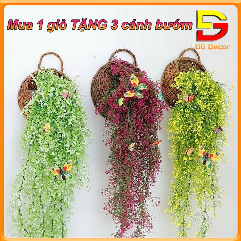 Giỏ Hoa Treo Tường Giỏ Cỏ Mây Trang Trí Nhà Cửa Tặng Kèm 3 Cánh Bướm 3D DC-31