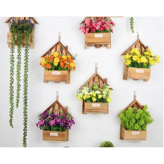 Nhà cửa & Đời sống > Trang trí nhà cửa > Hoa trang trí || Giỏ hoa treo tường gỗ nhiều mẫu hoa đẹp hình mái nhà trang trí nội thất phong cách mới HG-02Còn hàng