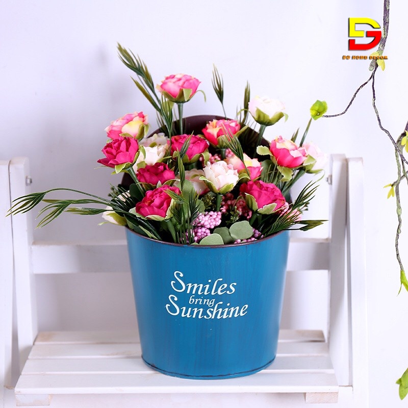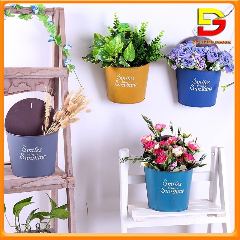 Giỏ Hoa Treo Tường In Chữ Smile Độc Đáo Trang Trí Nhà Cửa, Quán Cafe Tặng Kèm Móc DG-21