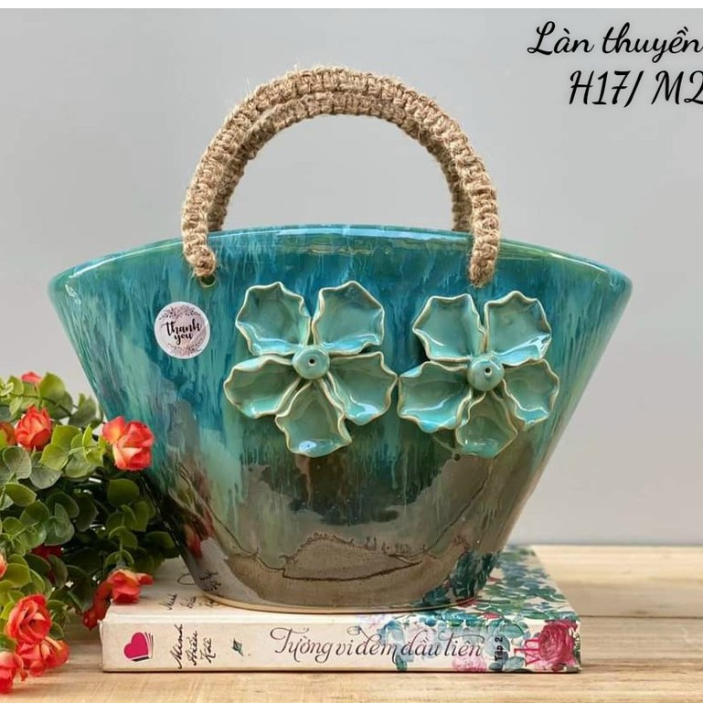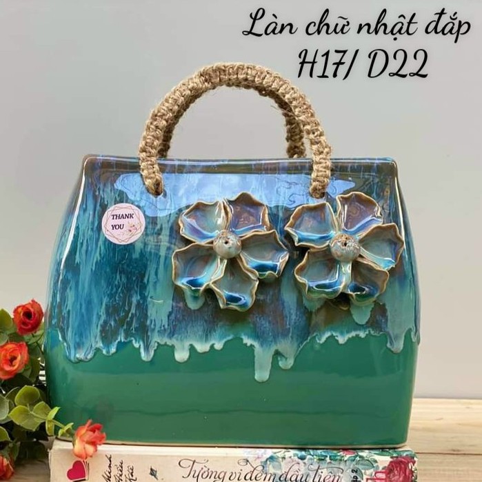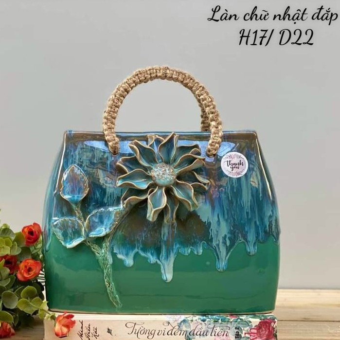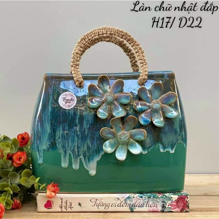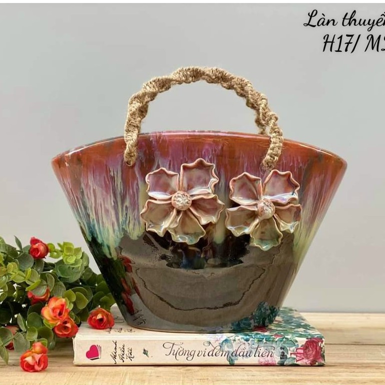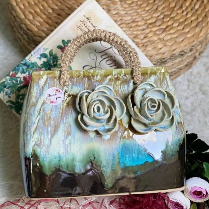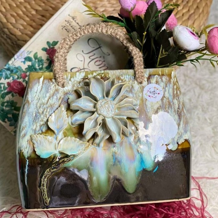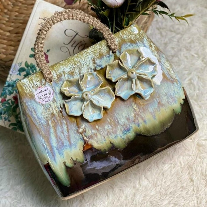 Giỏ hoa -Túi xách bằng gốm sứ men hỏa biến - cắm hoa,trang trí decor cực xinh
