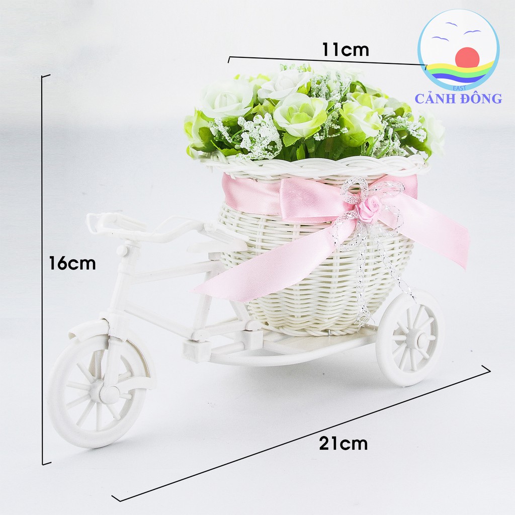 Nhà cửa & Đời sống > Trang trí nhà cửa > Hoa trang trí || Giỏ hoa xe đạp trang trí kèm hoa vải lụa nhiều màu sắcCòn hàng