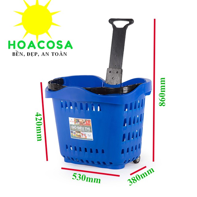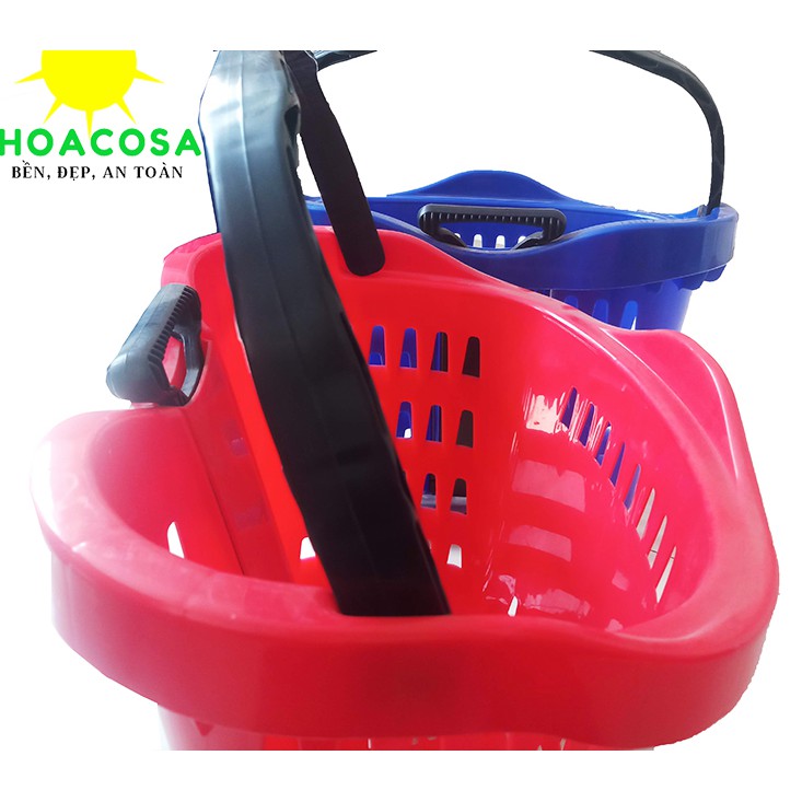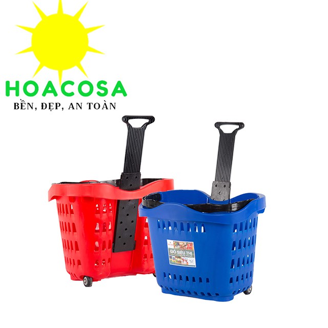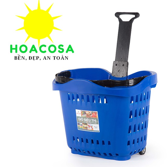 Các chị em phụ nữ, các bác lớn tuổi thường hay đi chợ hay mua sắm tại siêu thị, mua nhiều đồ thì cầm rất mỏi tay ( nếu có các bác nam/bạn trai/ chồng... đi cùng thì khỏe) vì vậy nếu có giỏ kéo siêu thị thì rất tiện, chỉ cần cho đồ vào giỏ và kéo đi nhẹ nhàng, đỡ bao nhiêu công sức, và việc mua sắm trở nên vui hơn rất nhiều.Hoacosa cung cấp giỏ kéo siêu thị được sản xuất bởi công ty Nhựa Hiệp Thành, công ty hàng đầu về sản xuất đồ nhựa gia dụng tại Việt Nam với 25 năm thành lập, và hai nhà máy lớn tại Long Hiệp và Lương Bình Tỉnh Long An, nên khách an tâm về chất lượng và xuất sứ sản phẩm ạ.
