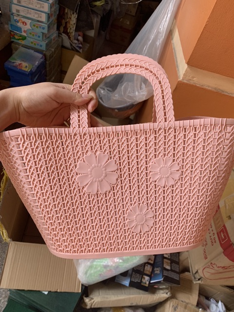 GIỎ (LÀN) ĐI CHỢ NHỰA DẺO MẪU MỚI 2019Em về sẵn 3 màu : hồng, xanh Ngọc, tím lợt