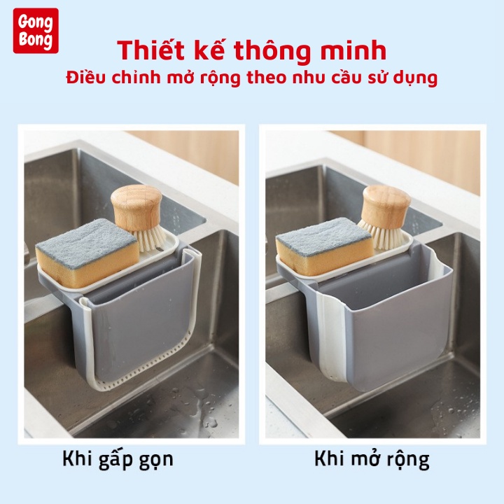 Giỏ lọc thức ăn thừa treo gắn bồn rửa bát gấp gọn rổ lọc rác cặn đồ ăn bỏ đi thiết kế thông minh tiện lợi