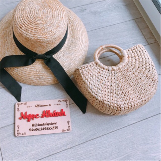 Giỏ cói lục bình xinh xắnGiỏ lục bình bán nguyệt trơn
