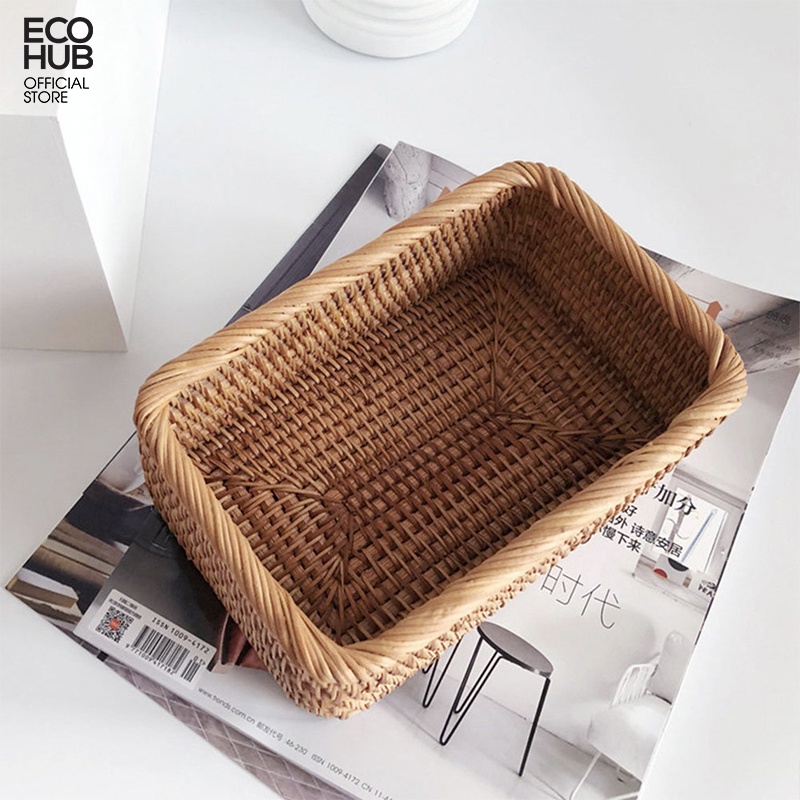 Giỏ mây đan bằng tay, Giỏ trái cây, Snack, bánh mì, Giỏ mỹ phẩm, Hộp đựng hình chữ nhật Đồ dùng nhà bếp gia đình ECOHUB