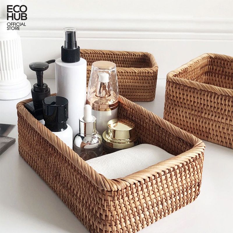 Giới thiệu Giỏ mây đan bằng tay, Giỏ trái cây, Snack, bánh mì, Giỏ mỹ phẩm, Hộp đựng hình chữ nhật Đồ dùng nhà bếp gia đình ECOHUB
