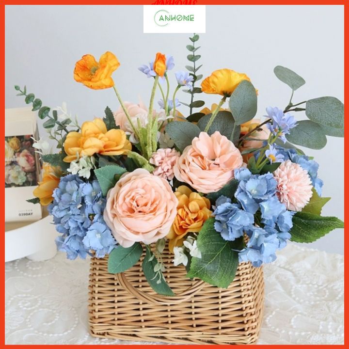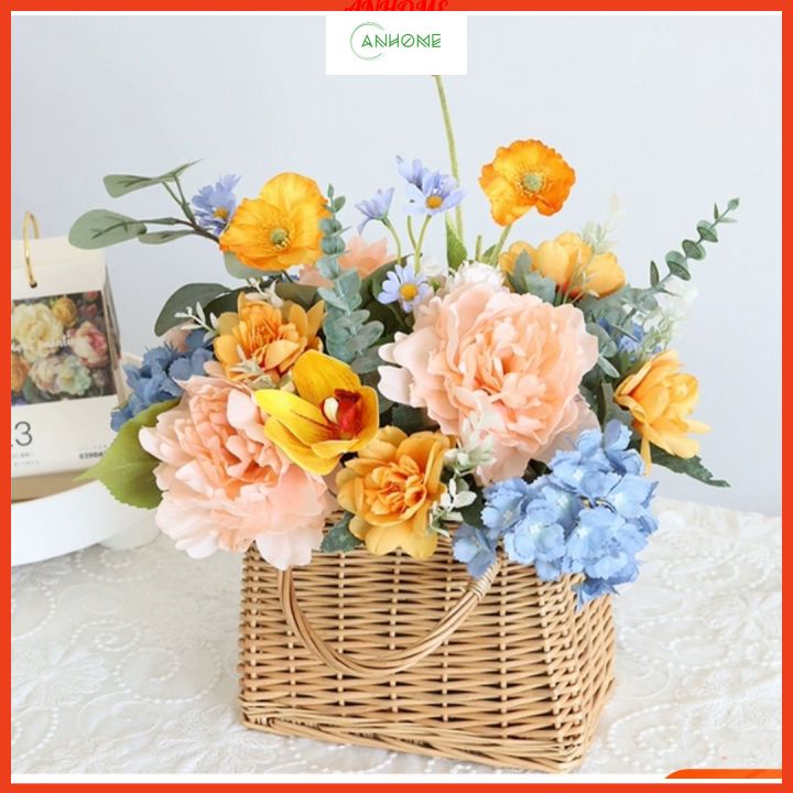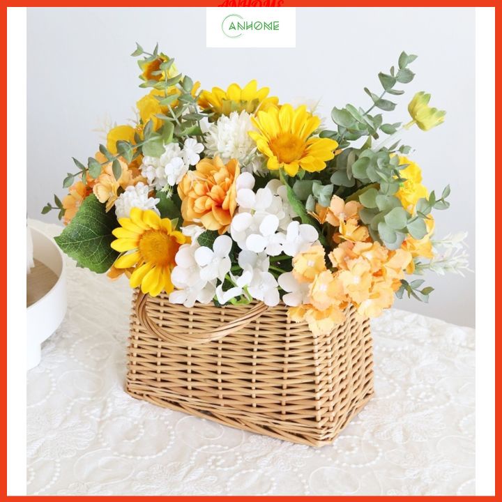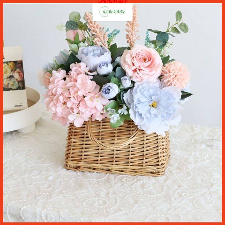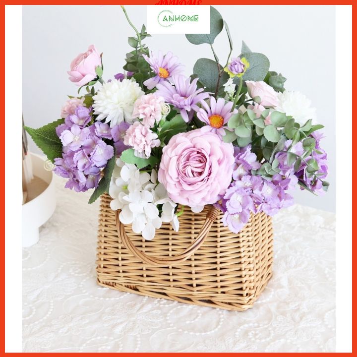- Giỏ mây cắm hoa tươi, hoa lụa decor nội thất, cửa hàng, nhà hàng, khách sạn