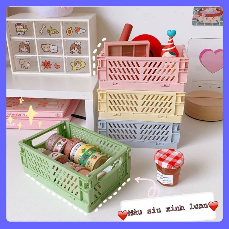 Giỏ mini đa năng để bàn xinh xỉu - Giá màu pastel rẻ đẹp cho bạn nữ trang trí góc nhỏ