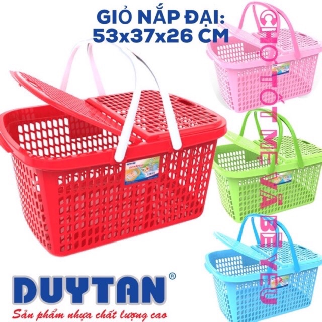 -Với giỏ, giỏ có nắp, làn nhựa đi chợ Duy Tân vừa giúp các mẹ đi chợ nhanh chóng tiện dụng, vừa là cách các mẹ bảo vệ sức khỏe bảo vệ môi trường trước mối nguy hại từ túi ni lông.