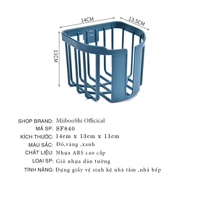 Giỏ nhựa dán tường đựng giấy vệ sinh trong phòng tắm phòng bếp khay kệ đựng đồ đa năng MiibooShi SF840