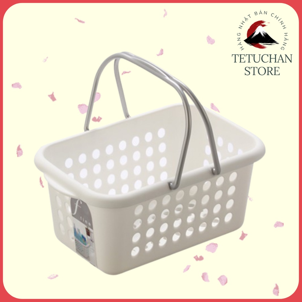 Giỏ nhựa đựng đồ màu trắng có quay xách cỡ trung Inomata đựng đồ nhà tắm, đồ dùng nhà bếp Nhật Bản - Tetuchan Store