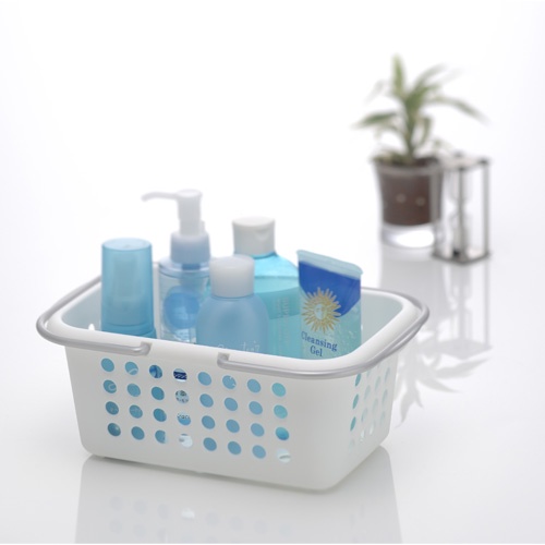 Giỏ nhựa đựng đồ màu trắng có quay xách cỡ trung Inomata Nhật Bản