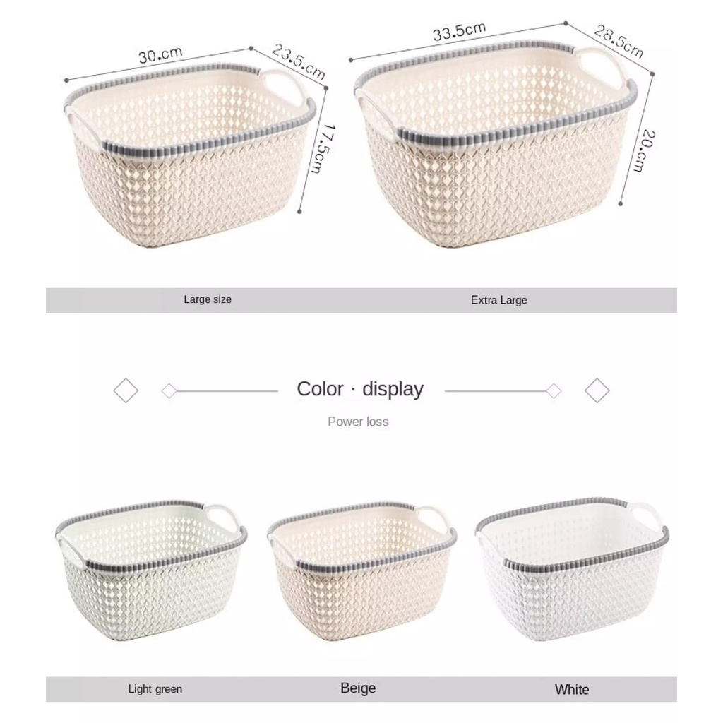 Nhà cửa & Đời sống > Dụng cụ nhà bếp > Khác || Giỏ nhựa giả mây đựng đồ đa năng, Rổ đựng quần áo, vật dụng nhựa đan giả mây có tay cầm phong cách Hàn Quốc 4 sizeCòn hàng