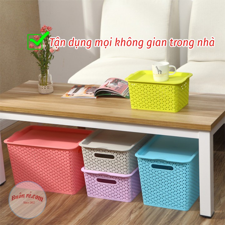 Giỏ Nhựa Hàn Quốc Song Long Có Nắp Size Trung ( MS: 2573 ) có nắp có thể xếp chồng lên nhau, giúp không gian nhà bạn thêm gọn gàng ngăn nắp.