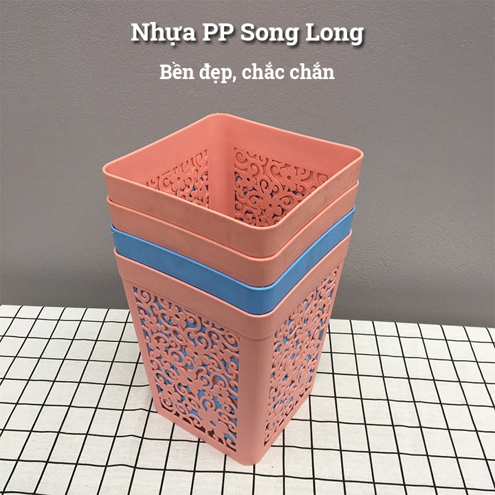 Nhà cửa & Đời sống > Dụng cụ chăm sóc nhà cửa > Thùng rác || Giỏ nhựa hoa văn đựng rác vuông Hàn Quốc Song Long 2611,giỏ đựng rác hiện đại giúp ngôi nhà thêm sang_MCCòn hàng