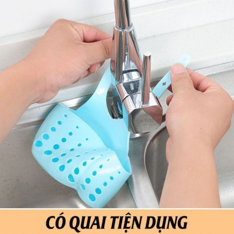 – Quai đeo có khuy cài chắc chắn giúp bạn treo giỏ ngay trên vòi nước thật tiện lợi. Bạn có thể treo ở vòi rửa bát, vòi sen tắm hay vòi chậu Lavabo đều được.