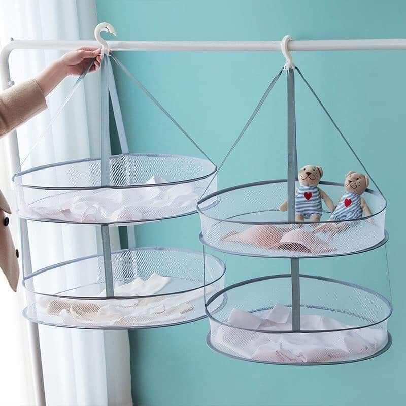 Nhà cửa & Đời sống > Dụng cụ chăm sóc nhà cửa > Dây phơi & giá phơi quần áo || Giỏ phơi đồ lót quần áo đa năng lưới gấp xếp gọn tiện lợi 2 tầngCòn hàng