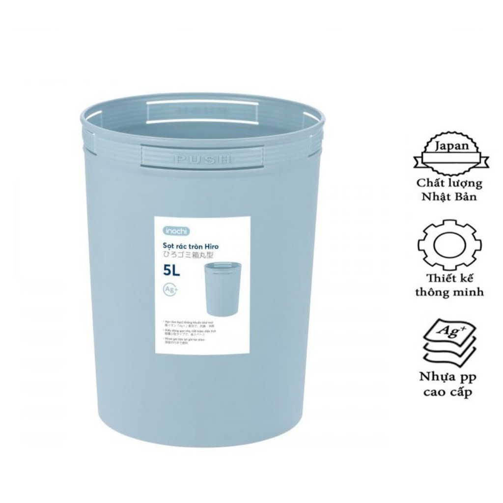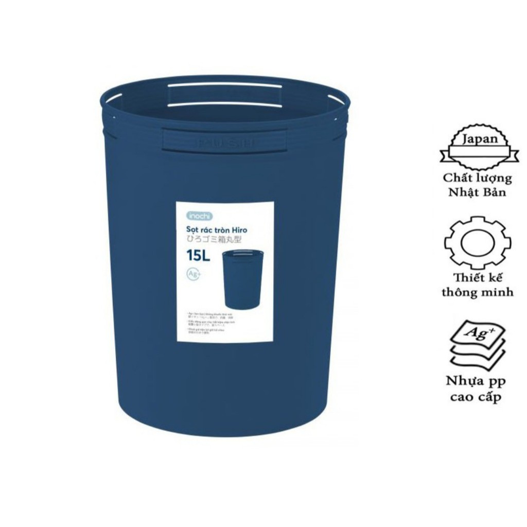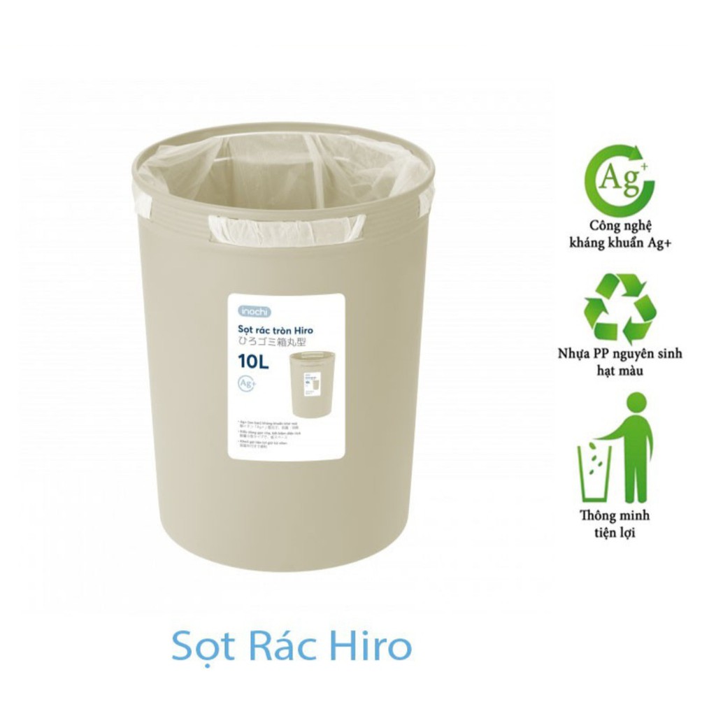 * Giỏ Rác, Sọt Rác Hiro 5L-10L-15L Inochi Có Cài Túi Rác, Làm Sọt Rác Văn Phòng, Khách Sạn, Đựng Rác Gia Đình+ Chất liệu: Nhựa PP (Polypropylen) nguyên sinh, hạt màu, inox và phụ gia kháng khuẩn Ag+