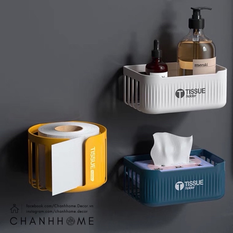 Nhà cửa & Đời sống > Sắp xếp nhà cửa > Hộp khăn giấy || Giỏ rỗ nhựa dọc ngang đựng giấy vệ sinh, chai lọ dán tường + tặng miếng dánCòn hàng