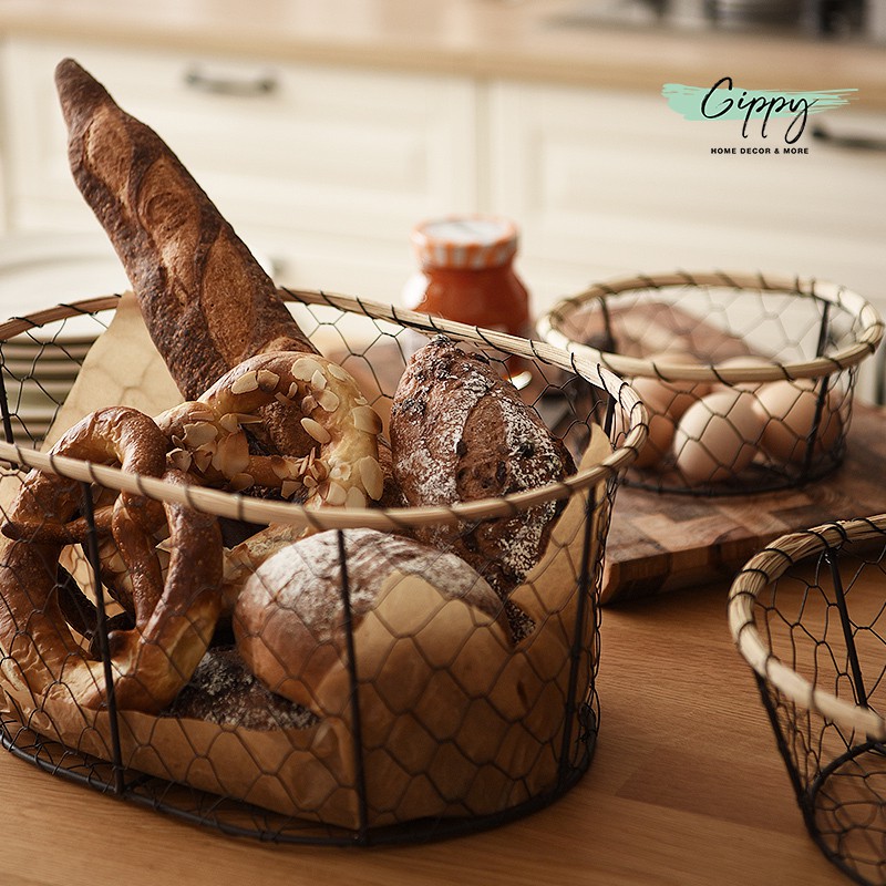 Giỏ sắt lưới đựng bánh mì, hoa quả, phong cách Vintage - Phụ kiện trang trí - Gippy Decor