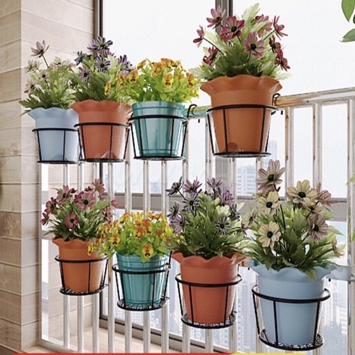- Những chiếc giá có thể treo móc trên lan can, ban công, hàng rào quanh nhà. Cách làm này có thể giúp tiết kiệm những khoảng không gian nhỏ nhất giúp nhà bạn thêm nhiều cây xanh, ngôi nhà sẽ trong lành hơn, sinh động hơn