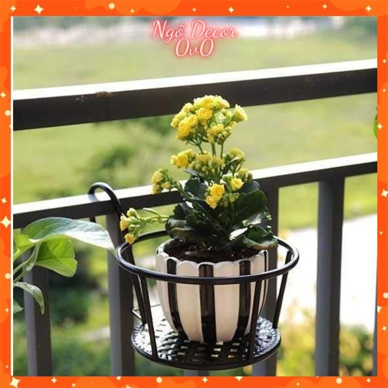 Giỏ sắt treo chậu cây, giá đỡ cây cảnh, kệ để chậu hoa có móc treo ngoài ban công tiện lợi
