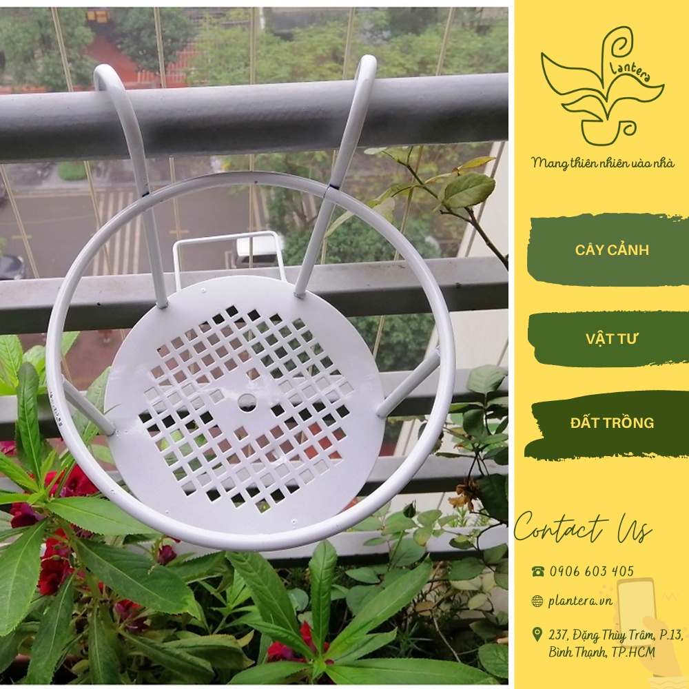 Giỏ Sắt Treo Lan Can Ban Công Đế Nhựa Tròn Trắng 22X18X11Cm - Khay Chậu - Giỏ Sắt