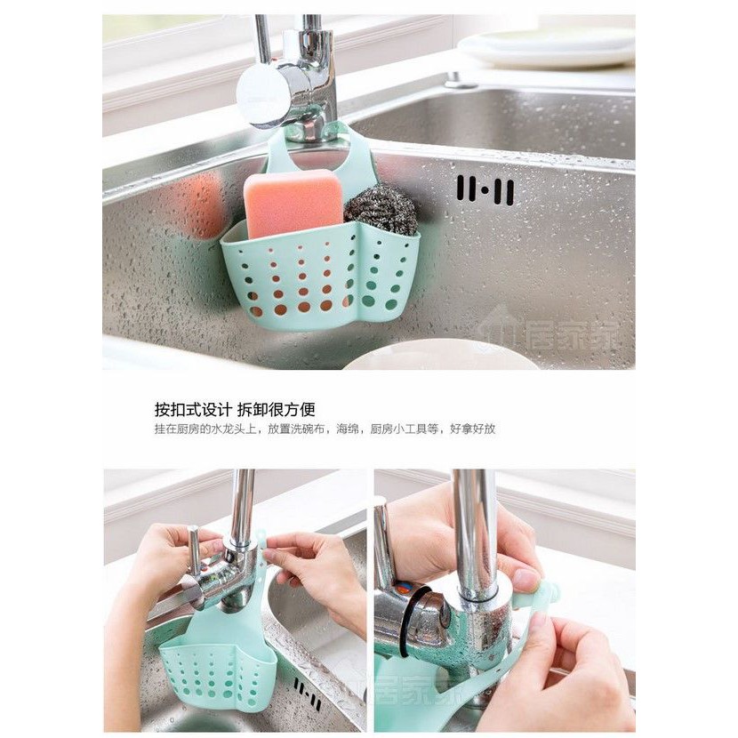 Nhà Cửa & Đời Sống > Đồ dùng nhà bếp & Phòng ăn > Đồ dùng phòng bếp || Giỏ silicon treo vòi nước, giỏ để xà phòng, búi rửa bát 2 ngăn gài linh độngCòn hàng