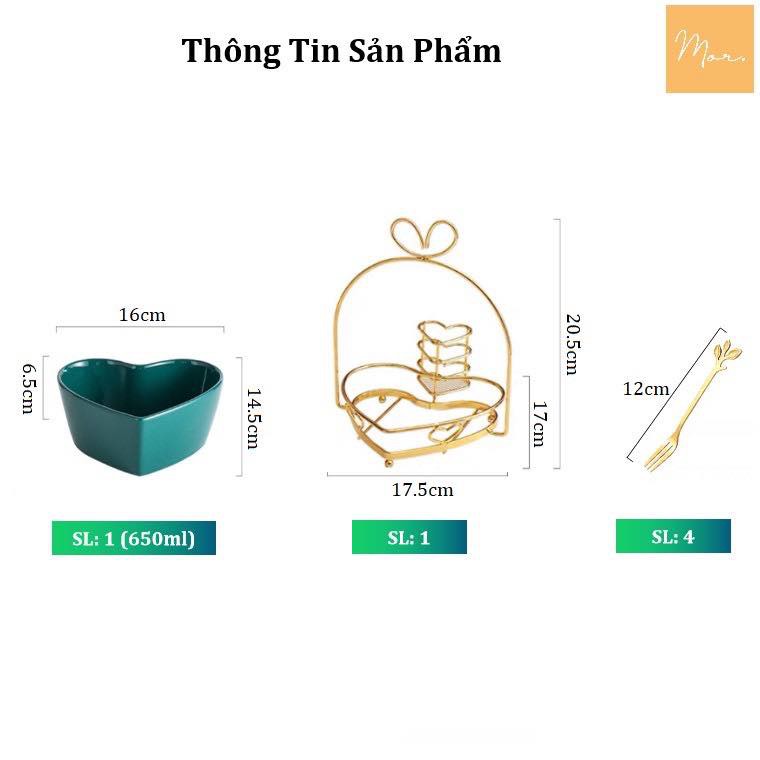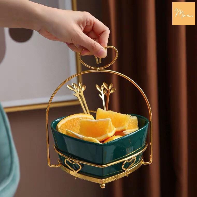 Nhà cửa & Đời sống > Bộ đồ bàn ăn > Dĩa || Giỏ sứ đựng trái cây sứ xanh hình tim kèm 4 dĩaCòn hàng