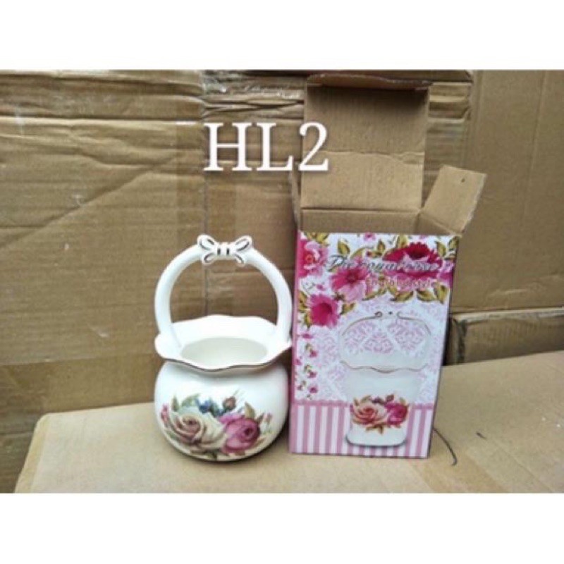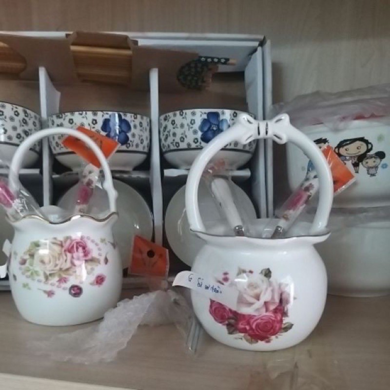 Giỏ sứ tròn lơ cao cấp kem thìa nữ sứ___