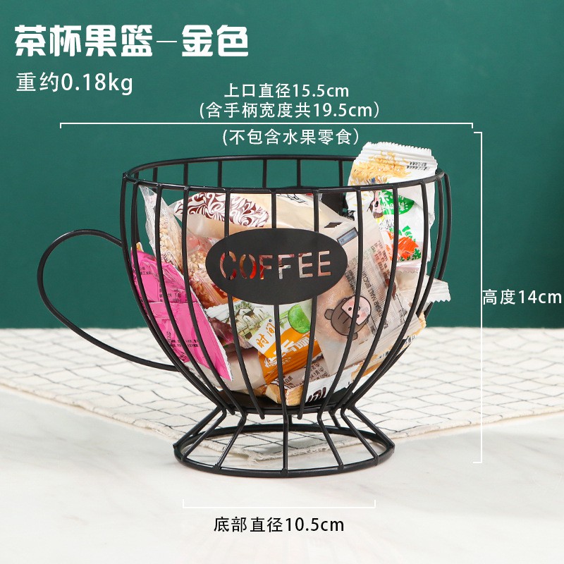 GIỎ TRÁI CÂY DẠNG KHUNG SẮT HÌNH TÁCH CÀ PHÊ, TRANG TRÍ NHÀ, BẾP, KỆ SÁCH, BÀN ĂN- Kích thước: 14cm x 19,5cm