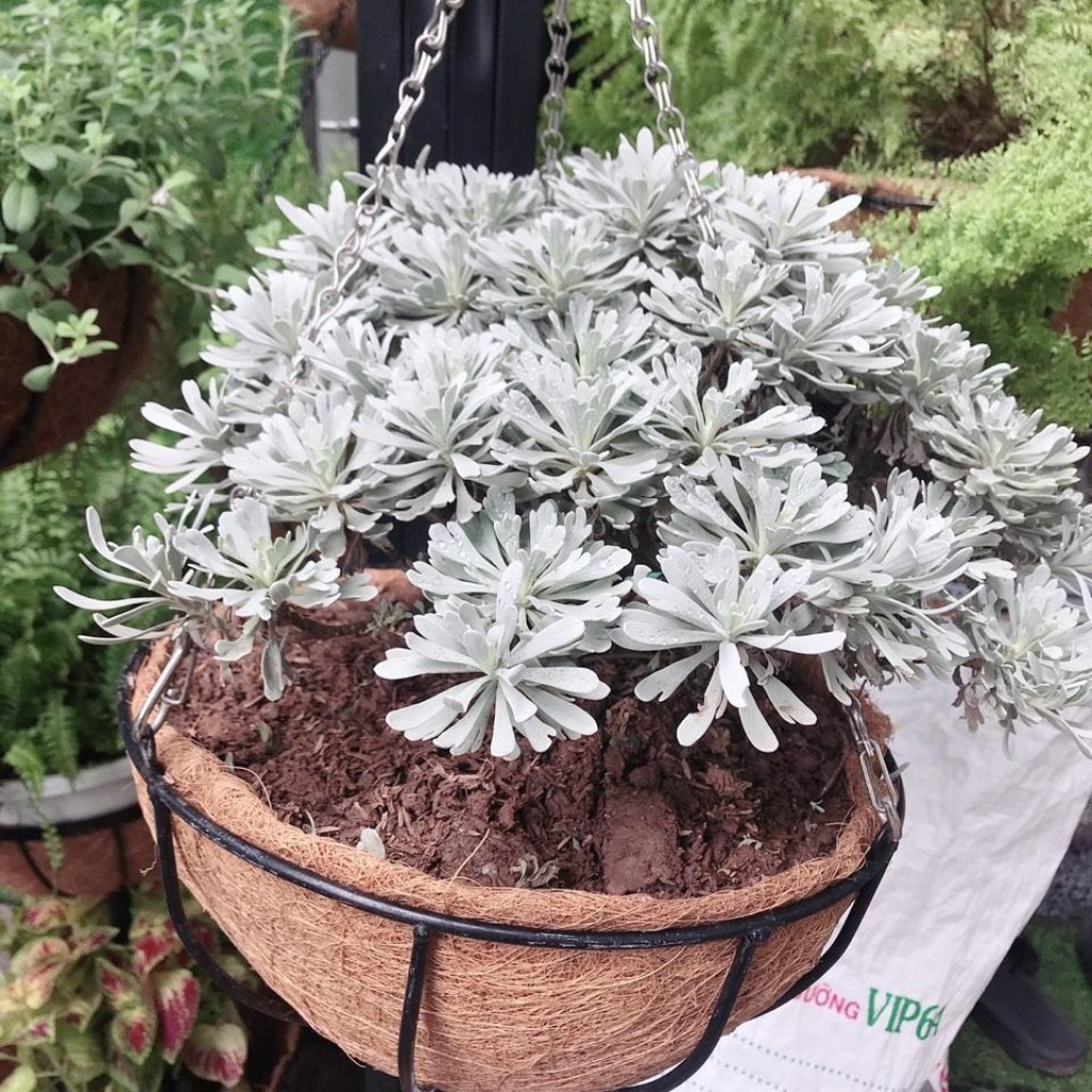 🍀 Màu sắc nâu nhạt của xơ dừa kết hợp với giỏ sắt sơn đen làm tôn lên màu sắc của cây trồng